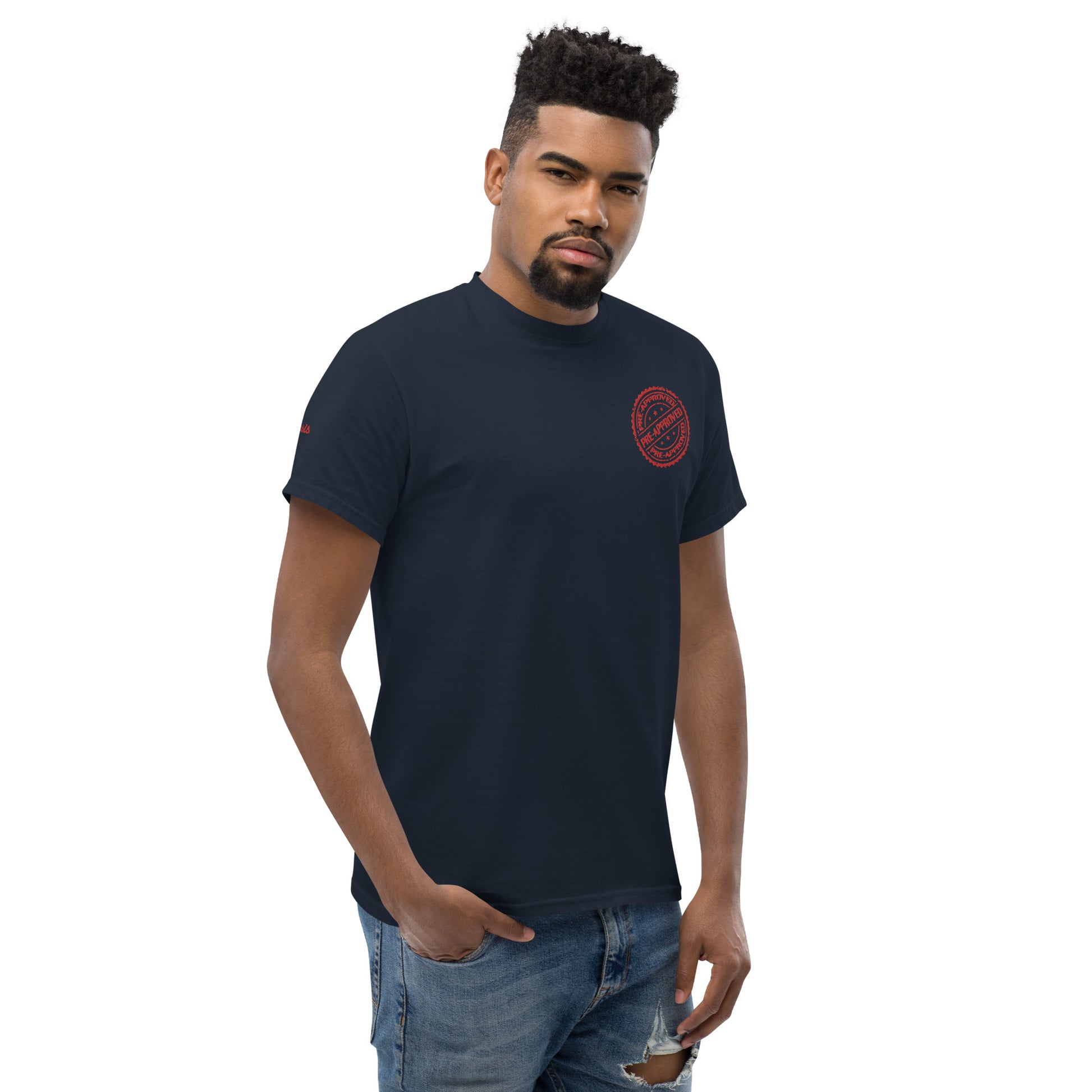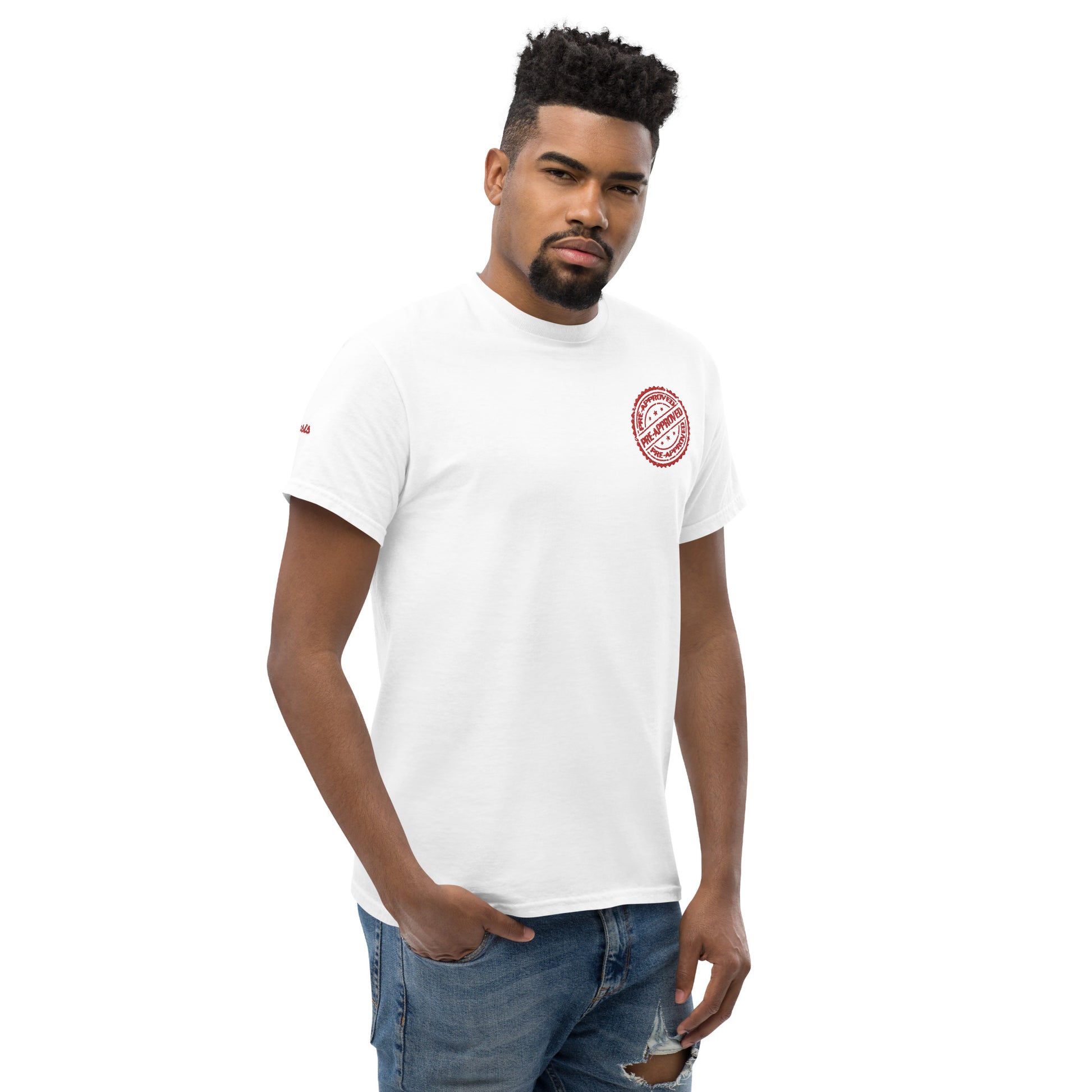 The 100% cotton men's classic tee will help you land a more structured look. It sits nicely, maintains sharp lines around the edges, and goes perfectly with layered streetwear outfits. Plus, it's extra trendy now!